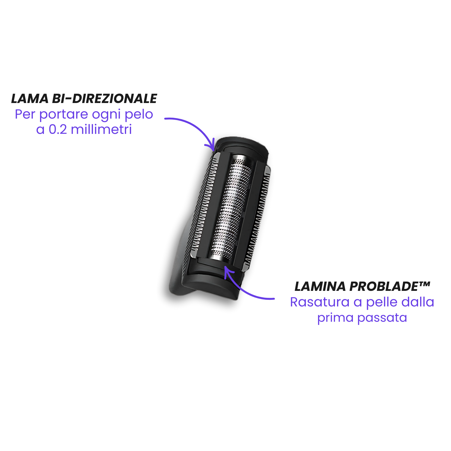 La Lama PROBLADE™ bi-direzionale è perfetta per il resto del corpo grazie alla lamina centrale che rade a 0, ti permette di ottenere una pelle liscia in un solo passaggio, ma NON va usata sulle palle!